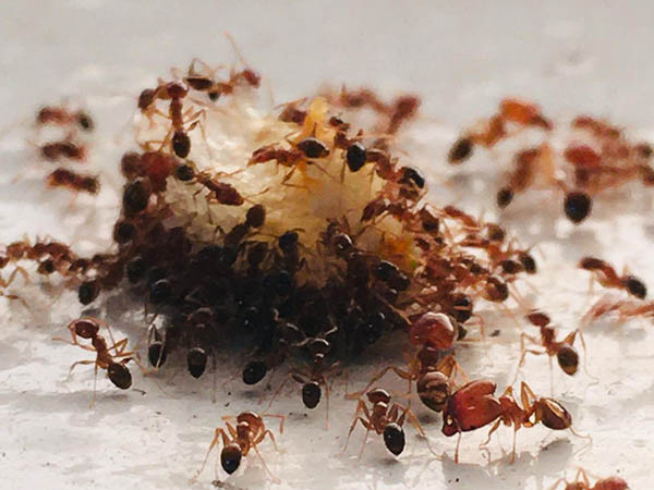 3)采用毒餌法,在螞蟻經(jīng)常出沒的地方,放置螞蟻喜歡吃的東西混合化學藥劑,引誘螞蟻前來取食。根據(jù)螞蟻的交哺行為,通過工蟻將其搬運回巢后,與蟻后及幼蟻的相互交哺,使毒素在巢內(nèi)迅速傳遞,數(shù)日后達到消滅蟻巢的目的。但螞蟻蛹不進食,因此可能除蟻不徹底,故應注意多點多次投藥。